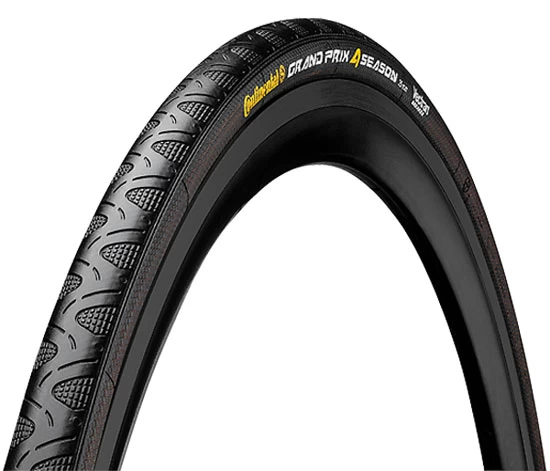 Un kilométrage très élevé avec une excellente adhérence sur route mouillée et à basse température sont les caractéristiques exceptionnelles du Grand Prix 4-Seasons 25-622mm