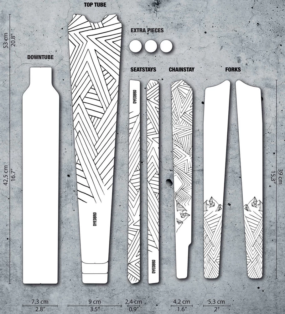 Protection de cadre DYEDBRO spécialement conçue pour les vélos de Gravel, avec de nombreux superbes designs au choix. Une coupe spéciale des feuilles adhésives pour les gravel bikes signifie moins de déchets et un montage plus facile – et les avantages pour ton gravel bike sont une protection contre les velcros/bandes à bagages, les frottements de câbles et les dommages causés par les pierres et les rochers.