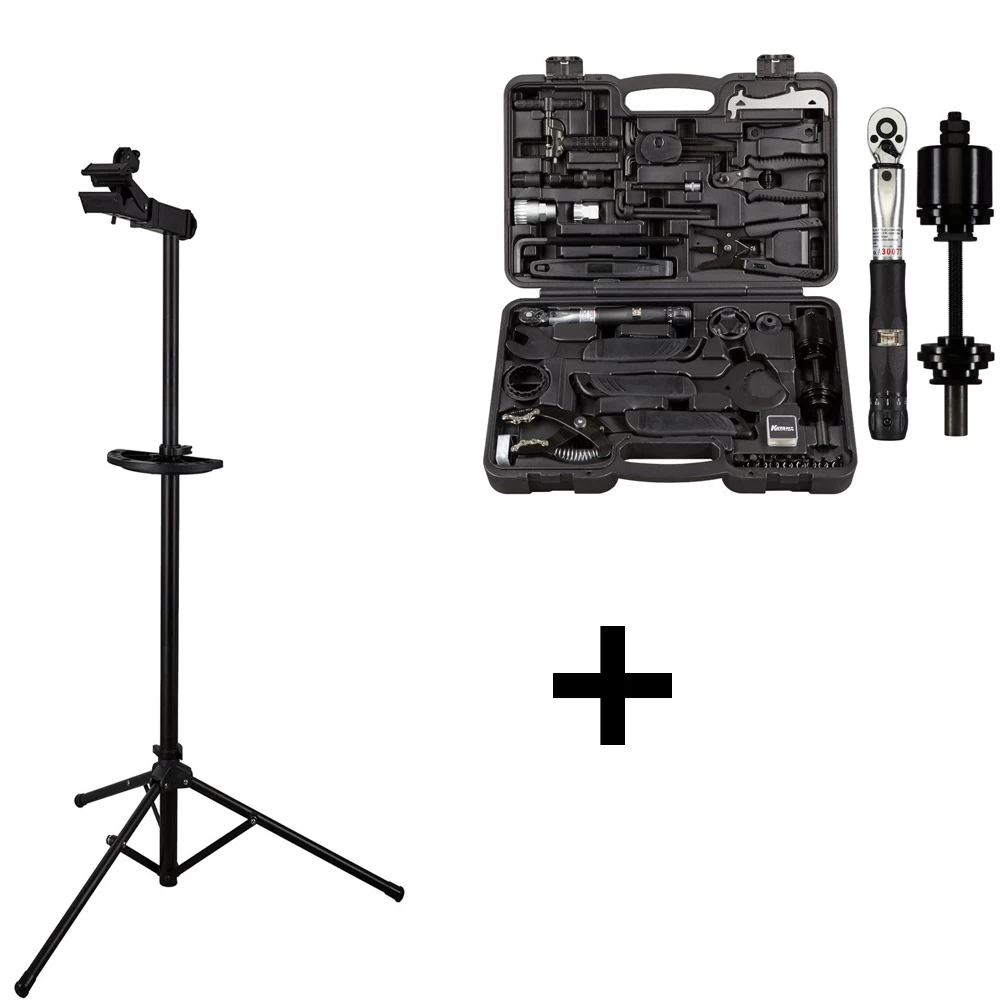 Le kit d’atelier WS-11 de Katana combine le support de montage pour vĂ©lo Ă©lectrique RS-1e Ă©prouvĂ© avec la mallette Ă outils professionnelle TC-1 richement Ă©quipĂ©e.