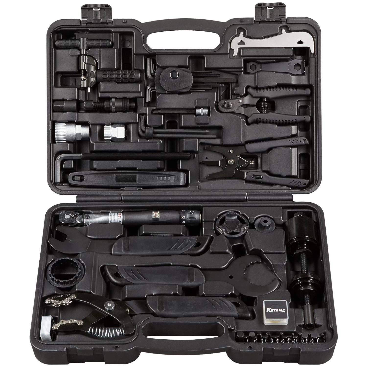La Katana TC-1 est une mallette à outils pour vélo modulaire qui couvre les besoins de base classiques tout en répondant aux exigences des types de vélos modernes. Elle contient tous les composants essentiels et offre ainsi la possibilité d’équiper ton atelier de vélo d’un seul coup avec tout ce que le viseur peut désirer.