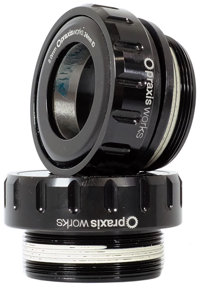 Ce palier de pédalier BSA de Praxis Works permet de monter des manivelles Sram GXP ou Praxis M24 avec un axe en acier de 24mm sur des cadres avec un siège de palier BSA de 68/73mm de large.