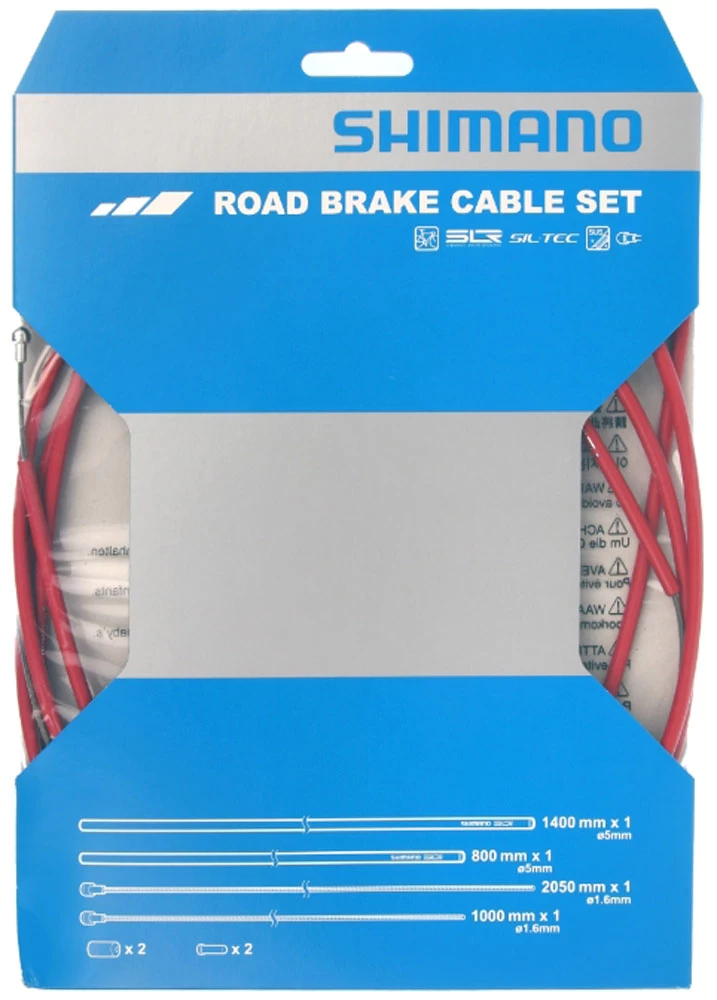 Jeu de câbles de frein pour vélo de course Shimano pour freins avant et arrière avec câbles intérieurs revêtus SIL-TEC pour une performance de freinage durable et souple.