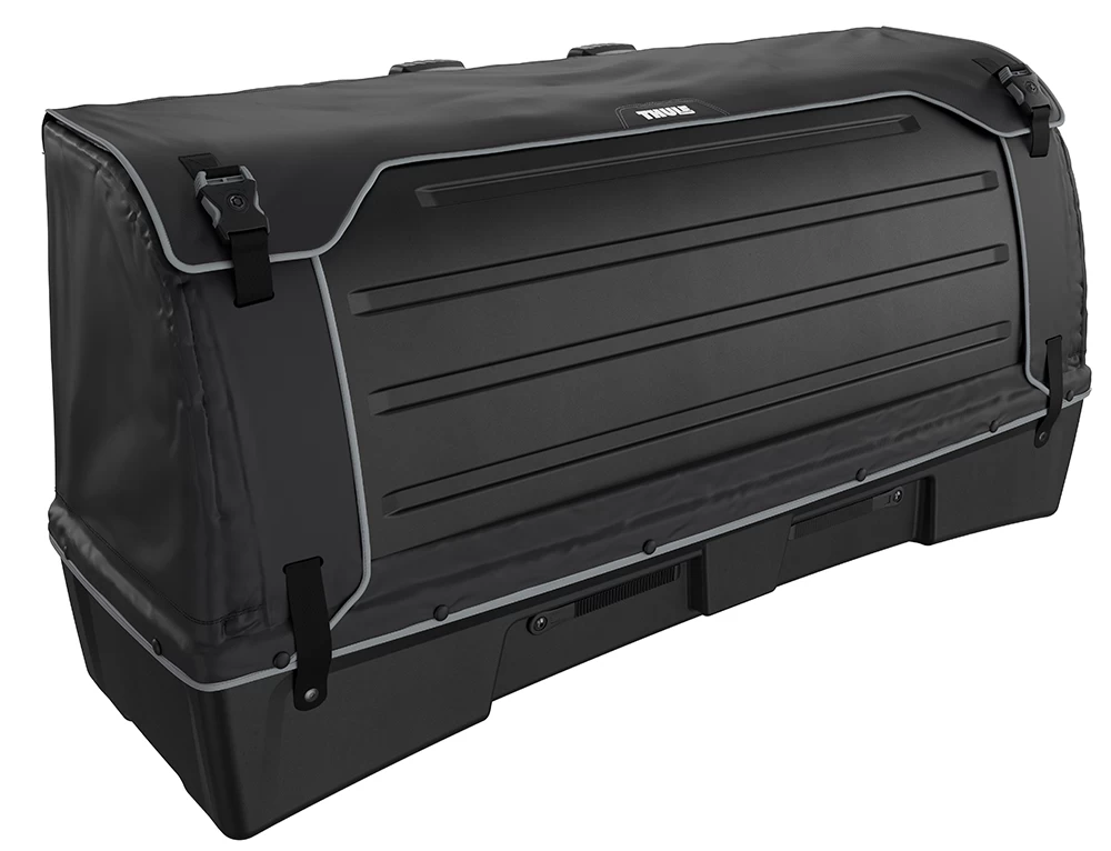 - Le Cargo Box de haute qualité offre un espace de rangement supplémentaire et facilement accessible de 300 litres, soit suffisamment d’espace pour deux sacs de golf ou une remorque Thule Chariot Multisport.