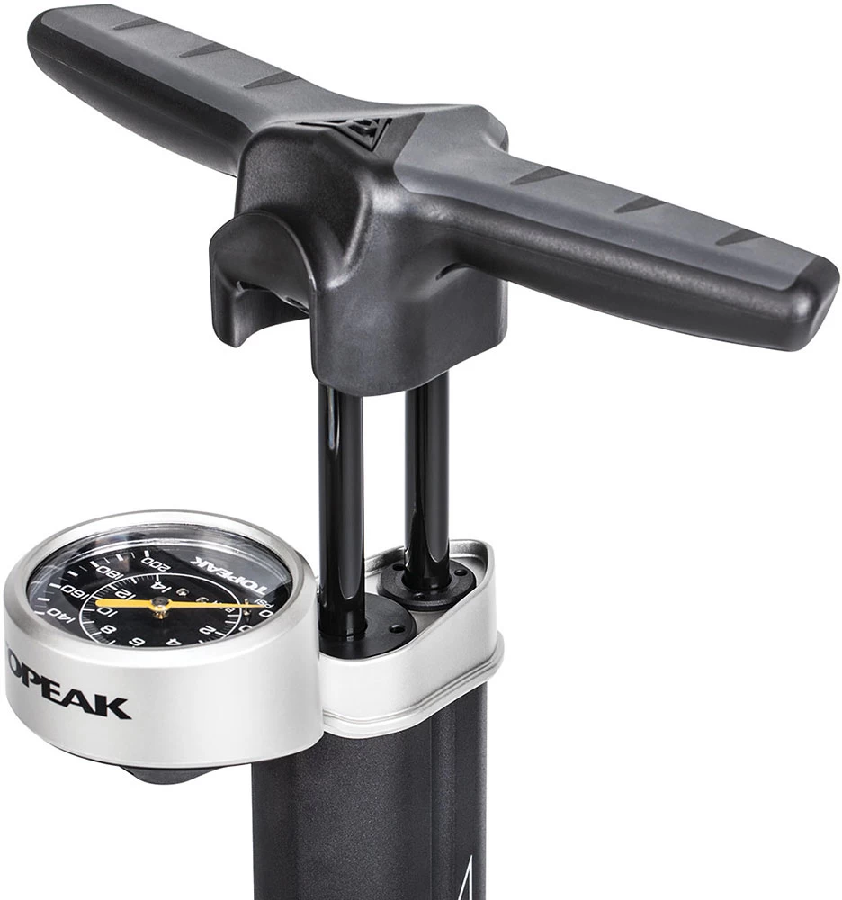 Topeak présente la technologie TwinTurbo, un nouveau concept de pompe à pied qui permet de réduire de 50 % le temps et les efforts consacrés. Depuis plus de 25 ans, les développeurs de Topeak ont en tête de créer la pompe à pied ultime. Celle-ci doit garantir à la fois une pression élevée lors du gonflage et un grand volume pour pouvoir gonfler efficacement et facilement les pneus des vélos de course et des VTT.