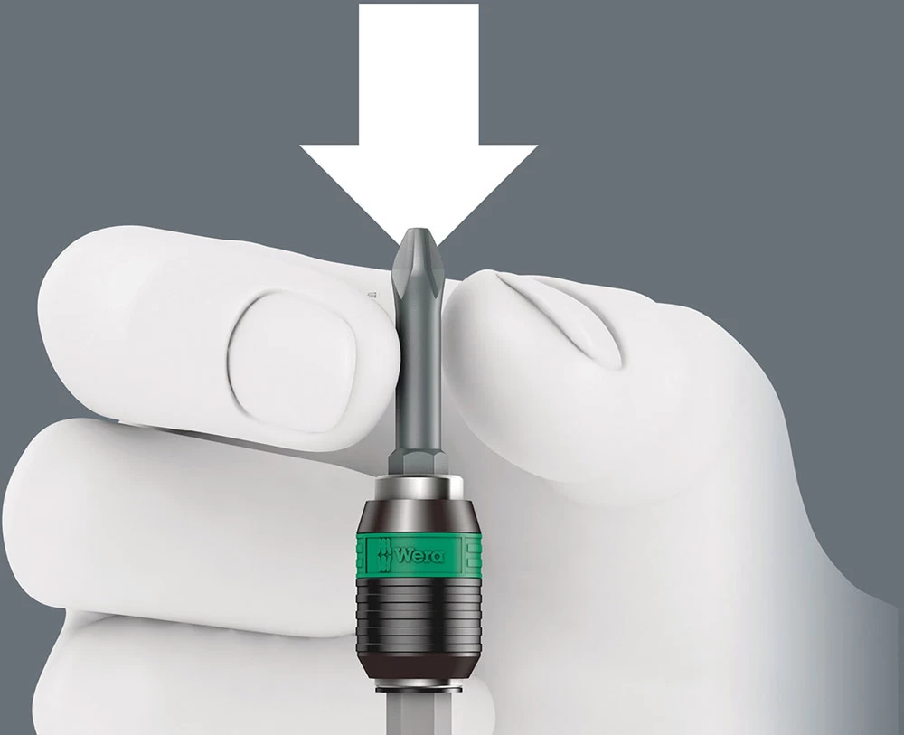 Les porte-embouts Ă serrage rapide Rapidaptor acceptent les embouts 1/4″ aussi bien de type DIN ISO 1173-C 6,3 et E 6,3 (sĂ©rie 1 et 4 Wera).